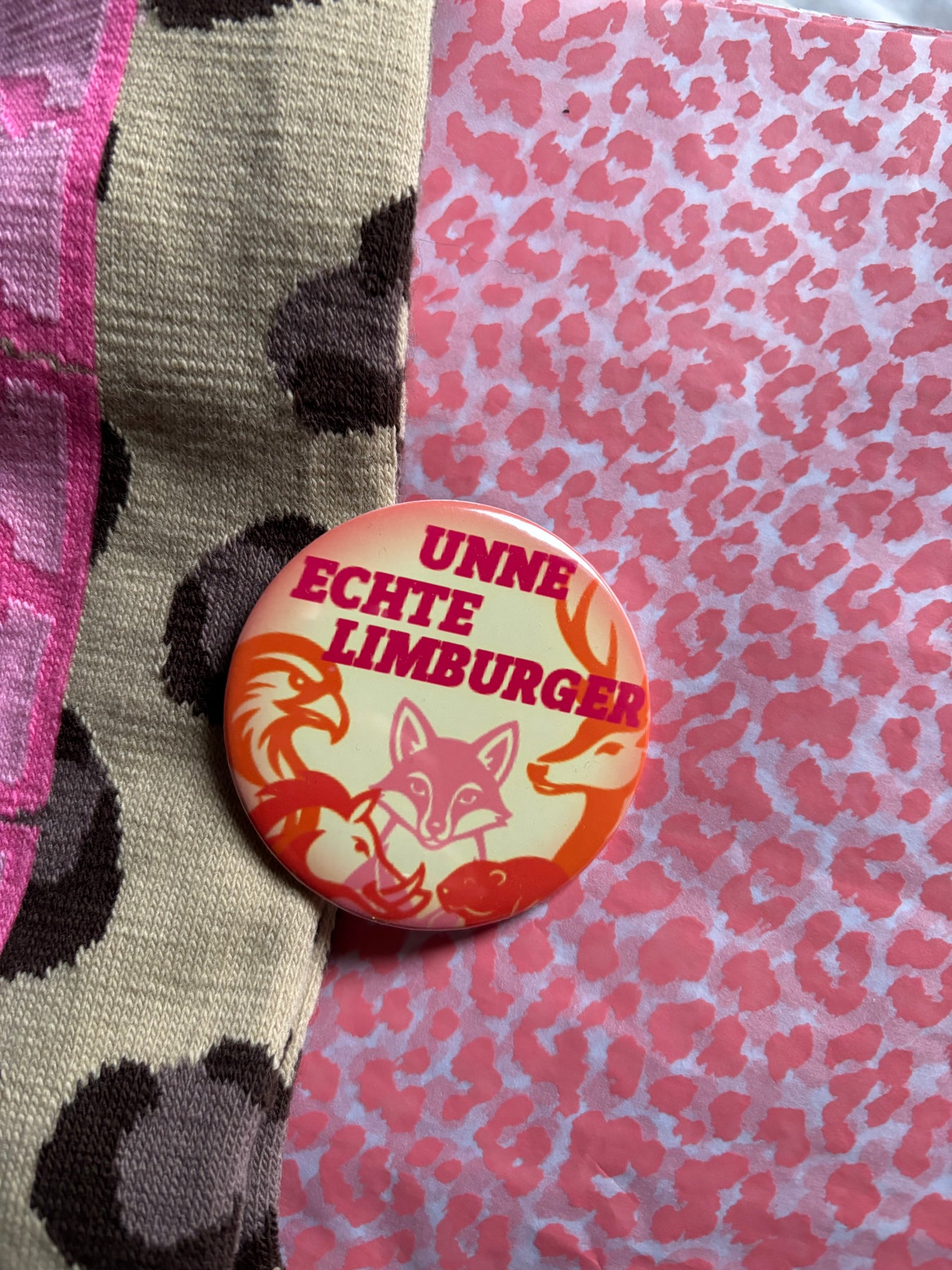 Deze unieke button is meer dan alleen een accessoire. Het is een knipoog naar onze prachtige provincie, onze humor, onze trots en ons bourgondische hart. Perfect om op je tas, jas of pet te prikken en iedereen te laten zien: 'unne echte limburger'